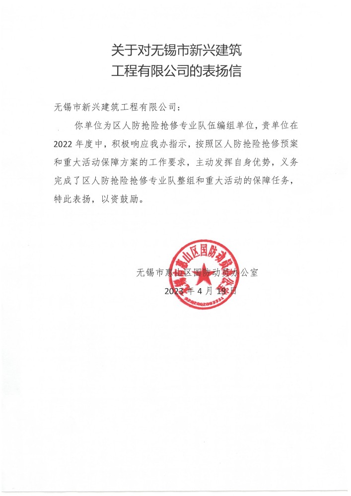 2023.04 人防搶險搶修2022年度表揚信